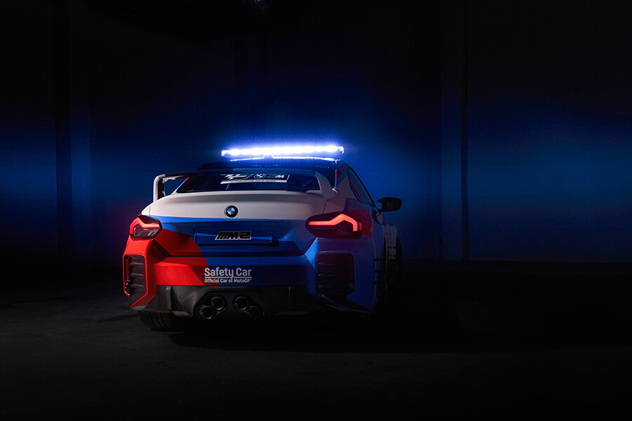 除此之外,BMW還在這部M2安全車周遭安上了包含排氣系統、碳纖維後照鏡蓋、車尾擴散器及尾翼等在內的M Performance套件。與2022賽季初期使用事售主打車色為基底不同,這回以M2安全車為首的MotoGP官方車輛皆重新披上了白底三色拉花的BMW M安全車塗裝。