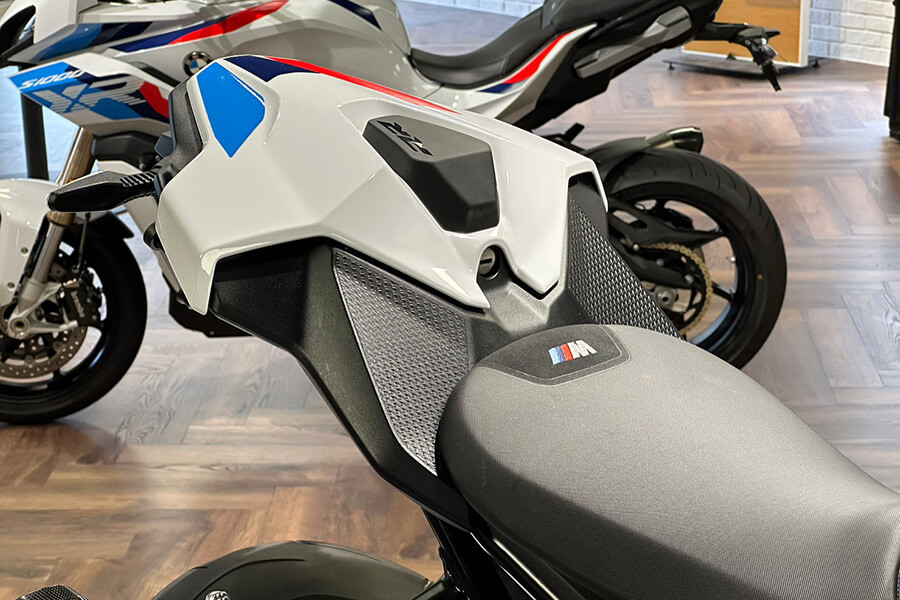 至於BMW汎德這次引進S1000RR帶來三個車型版本:一共是具有進階排檔輔助、ABS Pro以及M版計時器、輕量電池的標準版。更上一階的豪華版具有M耐力鍊條、鈦合金排氣管等Race Package,還有囊括DDC動態阻尼系統、定速器、加溫握把與胎壓偵測的豪華版;至於最頂級的M版本就如各位圖中所見,具有專屬塗裝、M運動座墊、一大堆M碳纖維部件以及摺疊拉感與護弓等等。