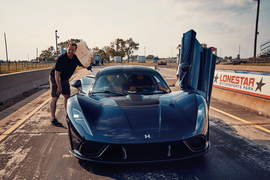 儘管冷氣已經開盡全力,你我在德州烈日下還是汗流浹背熱似一塊烤牛排。在我的正前方,是一條冒出模糊熱浪的四分一哩筆直柏油路,背後有一副V8發出暴龍咬著整包B&H吞雲吐霧一樣的怠轉聲,整部車在懸掛彈簧上前後搖曳,我則皺起眉頭盯著面前那個酷似mannetino的撥掣。開發Venom F5的全體人員正站在遠處一邊耐心等候,一邊懷疑我是睡著了還是心臟病發。