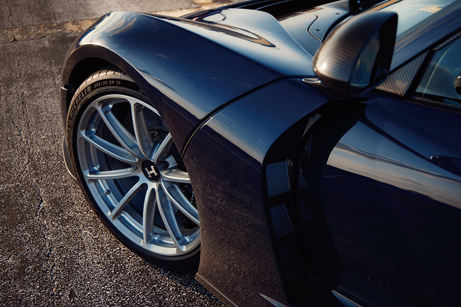 站在F5旁邊打量一番,最顯而易見的特點是整部車何其簡明扼要。買家會得到Brembo碳陶瓷煞車、固定吸震率避震器(為求節省重量)、現成米其林Pilot Sport Club 2輪胎(沒有用上花大錢開發的特製輪胎)、鍛造鋁合金輪圈和這個相對平滑的車身。此滑滑得有理,因為標榜極速的車毋須鋪天蓋地下壓力,而是務求升力越少越好。正如先前提及,車頂可以裝拆和大尾翼傍身的F5即將開賣,不過轎跑才是大家最想要的版本,阿John亦視之為最純粹的形態。