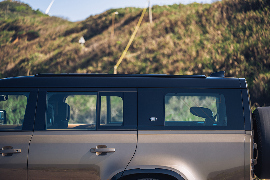 但是從最近另外兩部高階兄弟的試駕接觸後,我認為廠方在面對這種大尺碼車型的體態拿捏已達到某種爐火純青的地步。所以開頭我才會提到那個視覺延伸感,當Defender 130矗立在空曠濱海公路的平台上很像是一幅素描或是油畫中常見的畫面。透過車尾下緣的斜切線條收縮整部車的比例,甚至會覺得與110的尺碼似乎不相上下,直到你靠近車身或看著它的正側面,才會從B、C、D柱之間幾乎相同的長度發現到它的體型魁梧程度。當然車尾的斜收設計也是為了越野考量而來,讓Defender 130可以維持38/28/29度的進入、穿越以及離去角與它的出色越野能力。增加的尺碼全數運用在後廂空間,所以也讓本車在五人模式下具備超過1000公升的容量,全打平後最高有1857公升,滿載的狀況下則是有290公升的後廂容量,跟90車型差不多,也跟一些標準七人SUV相去不遠。