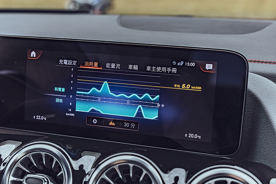 最後,我對於EQA的表現大致是褒多於貶。而且也因為採二驅設定,整體電力消耗算是目前節能掛的選擇,一整天下來的電耗就是穩定保持在一度電5~6公里之間。同時車載的電耗計算系統也稱得上是非常精準,雖然里程總數並沒有500公里起跳的搶眼數字,但這一天下來的剩餘里程與使用里程幾乎是相等於的狀態,而這其實包含我在山路上盡興地走了幾趟理論上耗電率極高的使用狀況,這些表現會讓使用者能更快速與車輛建立信賴感,也是賓士一直以來給很多買家的既定印象,而除了計算精準外,我想EQA強調回收效率的動能設定也是一個重要元素。