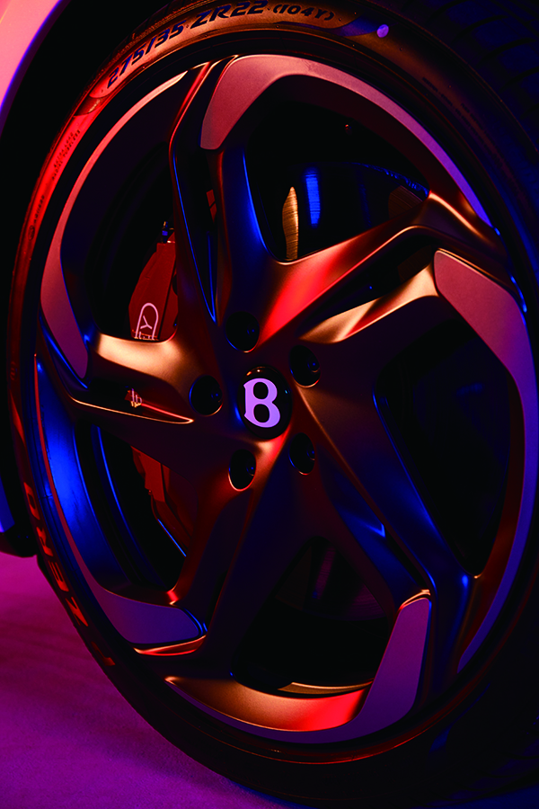 頭燈跟Bacalar一樣左右各一盞,而不是賓利以往的四頭燈設計。頭燈內部紋理亦有別於賓利近年使用的「花紋水晶杯」設計,改為利用縱橫交錯的LED營造質感。Mindt指出:「講究奢侈享受的顧客正從傳統走向現代化。他們不想要那麼多裝飾和鍍鉻,車燈日後正可代替鍍鉻的角色。」至於車尾那邊,則有一套形態纖幼的新尾燈。