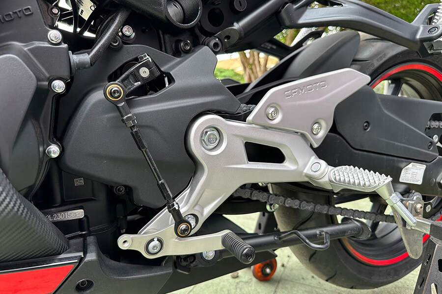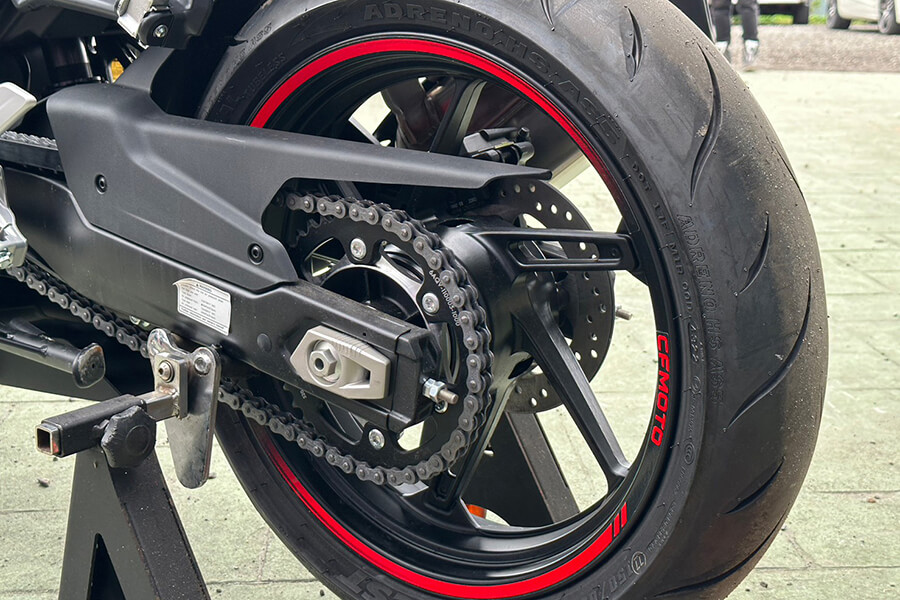 這顆引擎固定在高強度合金鋼分體式車架上、連接板金沖壓焊接成型的後搖臂,並由高強度鋁合金輪圈配合由CST輪胎為此車量”車”訂做的CST SPORT ASS配胎,專車調配此車的性能操控與耐用性。