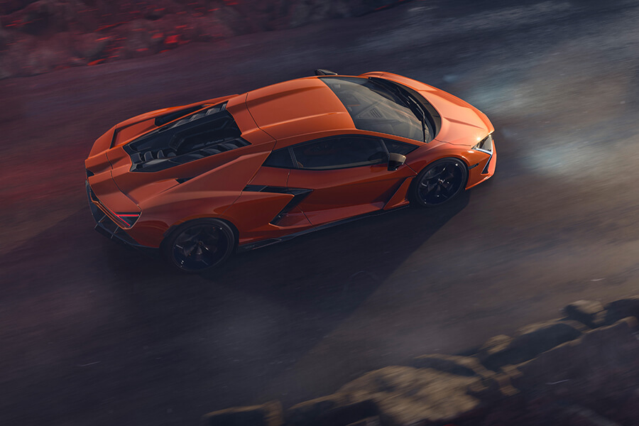 此外在空氣力學方面也進行了改進:Revuelto 的車身採用主動式空力設計,整體下壓力比其前朝多出 66%。碩大的前分流器和獨特的車頂設計能將空氣推向彈出式尾翼。而舊的推桿懸吊已經消失,前方空間也得以獲得釋放,並在車輛前後以雙橫臂多連桿裝置、加上磁阻尼器和控制軟體一併發力。新車採用了Lamborghini Dinamica Veicolo (LDVI)系統的重新校正版本;位於汽車重心的一組傳感器可即時監測橫向、縱向和垂直負載,以及車身側傾、俯仰和偏航,而現在也監測扭矩矢量的功能。