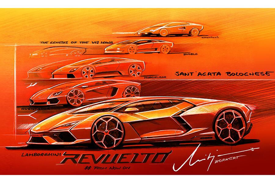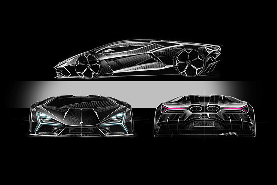 Revuelto的外觀—據Lamborghini設計擔當Mitja Borkert所述,參考了”宇宙飛船”的設計。 再增加79mm的軸距之間,Lambo採用之字型設計結合引擎進氣口、並以扶壁流暢地連通車頂與後輪拱。至於車頭幾乎以當今Lamborghini愛用的Y字形日型燈型塑車頭面貌,誇張複雜的擴散器搭配高為安裝的尾管出口更是前衛,同時引擎蓋…呃…TG一時間不知該如何稱呼這塊碳纖維,畢竟它掩蓋了引擎室其他區域—除了V12引擎本人。