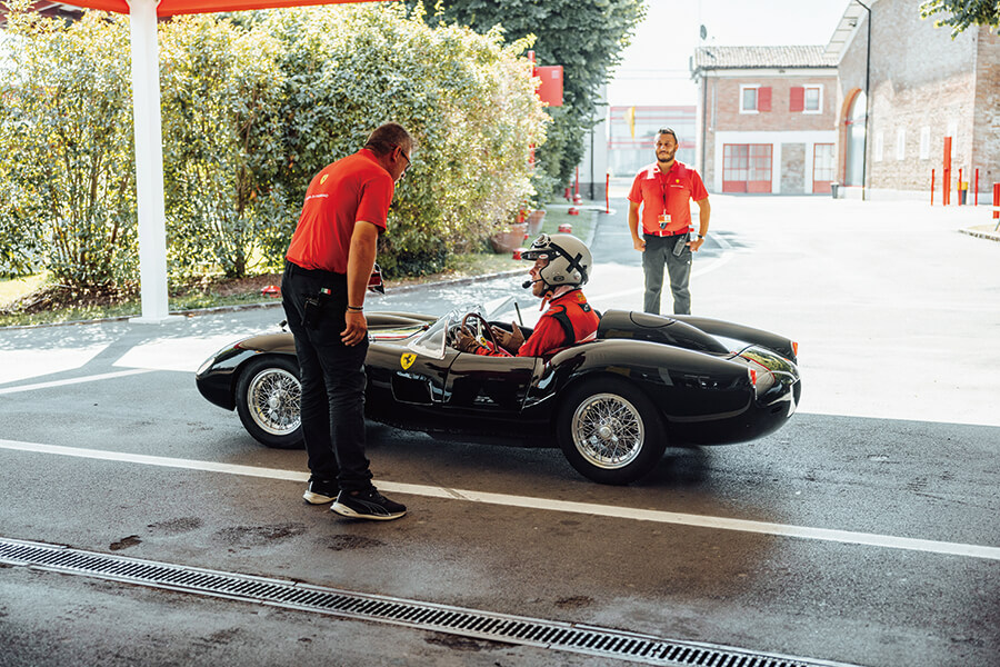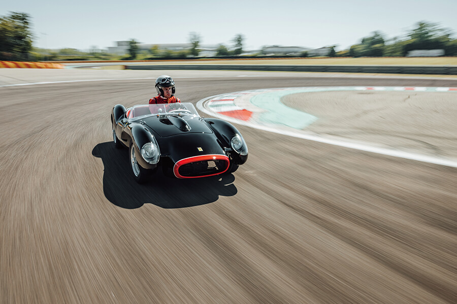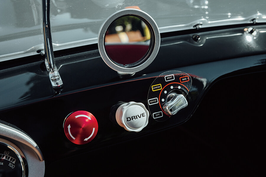 身高六呎的我進出車廂頗有難度。由於車門只是意思意思的東西,我索性跨過車門直接把腳伸進車廂內,一邊設法不要刮花座椅,一邊雙手撐著兩邊借力把身體慢慢送進誘人車身包圍著的駕駛艙,直到鞋碼12號的雙腳落在那些來自488 Pista的踏板上。向原著致意的仿製品?絕無此事,車上零件可是一律刻有相同編號,Nardi更參照250 TR饒富代表性的木環方向盤特別炮製了一個微型版。個人亦十分欣賞他們重新演繹的250控台,原有轉速錶和油壓計現已變成用清晰字體顯示充電狀態、電池/馬達溫度的儀錶,以及一個刻度介乎0至100%的功率錶。
