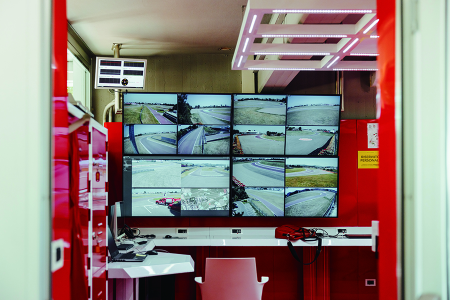 Fiorano是一個十分認真的試車場,維修站車房每一角落都設有多個電視屏幕播放現場情況,賽道更埋有大量傳感器,以每秒數以十億位元的速度把即時數據傳送給工程師以便分析。想租借這片場地搞活動,通常要提前一年預約,所以我只有兩個小時偷偷摸進去拍完所有照片、影片和創造歷史。