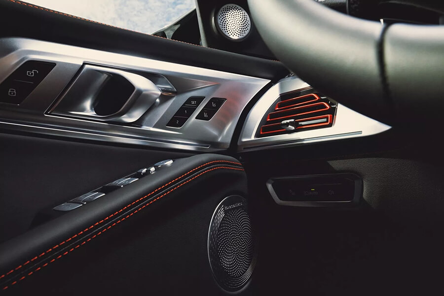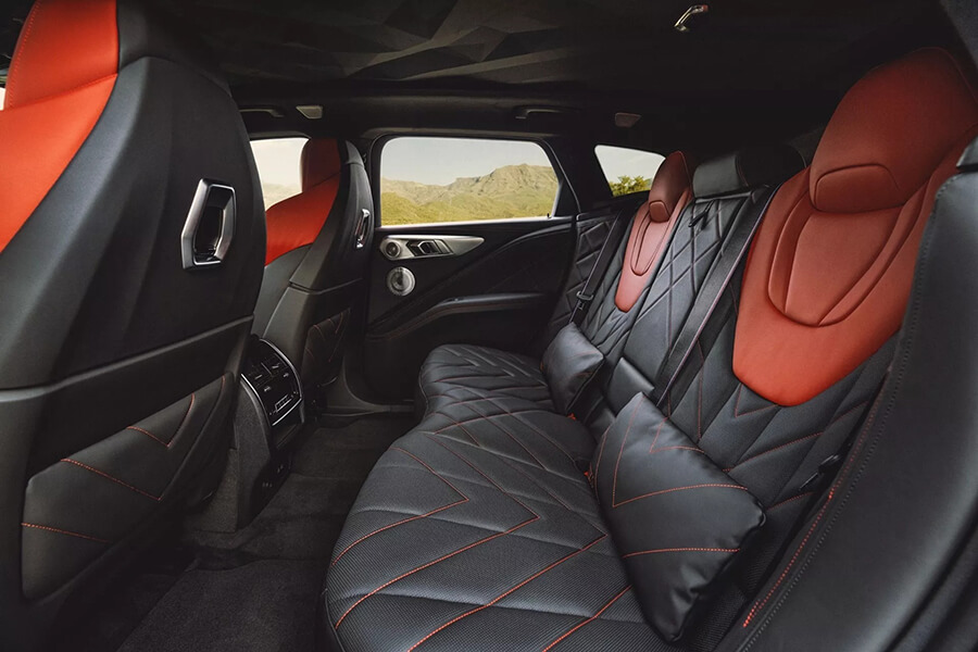 除了車外採取”多倫多紅”及”BMW Individual Frozen Carbon Black”特殊配色之外,車內在座椅、儀表、門板內飾集中控等黑色表面採取了紅色縫線對比,中央螢幕下方則有紅色XM徽章,換檔撥片及空調出風口則有別緻的紅色綴飾。