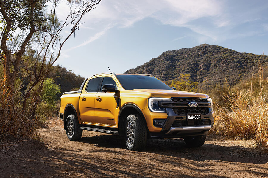 在正宗美式皮卡設計下,The All-New Ford Ranger致敬品牌經典車款F-150諸多外觀元素,勾勒出更為鮮明的硬悍皮卡樣貌。全新世代Ranger不僅身型略微放大,同時透過全新進氣格柵、頭燈組、鋁合金輪圈組、C字型尾燈組等全新設計,展現出更具科技感的外觀身型。與此同時,The All-New Ford Ranger頗具辨識度的美式貨斗造型,除可見全新C字型LED煞車燈及尾門側踏板外,搭配Wildtrak車型獨佔的運動車頂架、曜石黑防滾籠等設計,使The All-New Ford Ranger展現視覺張力與實用機能兼具的全新造型。
