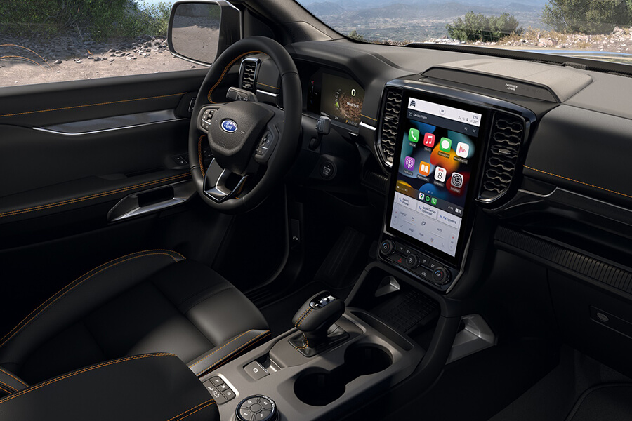 新款Ford Ranger跳脫傳統皮卡商用車的設計框架,帶來更具科技氣息的數位化科技座艙。具客製化機能的8吋全彩液晶智慧多功能儀錶板,帶來清晰簡潔的視覺介面。中控台則是可見Ford全新開發的SYNC®4A娛樂通訊整合系統打造出色的人因介面,讓各式車輛常用功能在操作上更為直覺。除了一般螢幕觸控及按鈕、旋鈕控制外,SYNC®4A娛樂通訊整合系統更提供了對話式聲控系統、無線Apple CarPlay®/Android AutoTM、以及線上車主手冊等多項便利機能,帶給消費者便捷的科技使用氛圍。