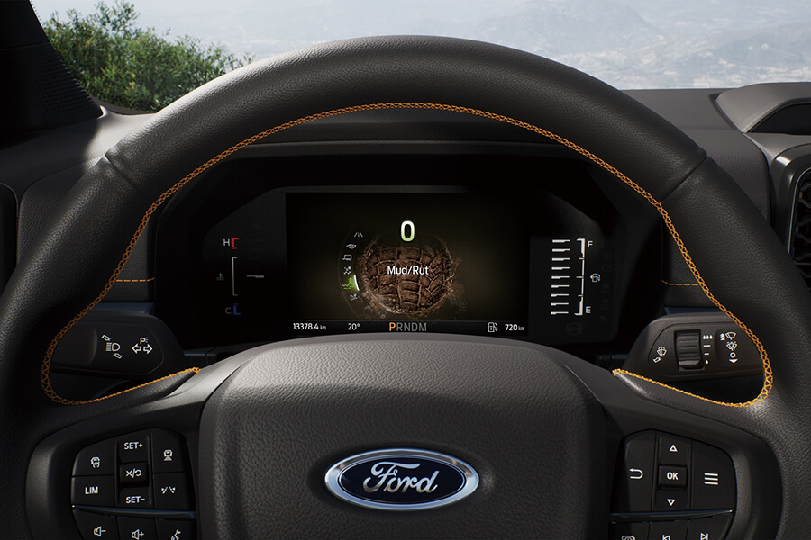 新款Ranger輪距寬度較上一代車型增加60mm,前輪更往前移動50mm同時使前懸縮短,進一步提升了車輛越野能力及車輛穩定性,並同步增加整體置物平台的寬度。其具備30˚進入角/21˚穿越角/25.6˚離去角,以及800mm最大涉水深度的優異越野能力基礎,同時受惠於XLT所配備的Part Time 4WD(高速二驅2H/高速四驅4H/低速四驅4L),以及Wildtrak車型配備的Advanced 4WD(新增智慧四輪驅動4A)及電子式後軸差速器鎖定等技術,讓新款Ranger可因應道路狀況提供最佳化的四輪循跡性,並在沙地或濕滑路面等惡劣路況帶來優異的脫困能力,引領車主探詢生活未知的精彩。