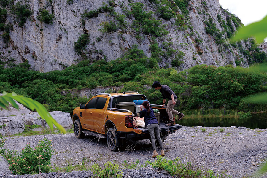 ord Ranger承繼過往出色的貨斗載物空間優勢,並且創造超大多元空間收納機能。除高抗磨車斗護板、車斗固定扣環、車斗綑綁繩固定桿等便利設計外,XLT車型配置箱頂/尾門保護飾條、置物箱快拆蓋;Wildtrak車型配置專屬的鋁合金固定桿、曜石黑防滾籠、可調式車斗滑軌、Zone Lighting區域照明系統等,不僅實現強大的載運能力,更可因應消費者不同裝載需求,靈活裝載商用貨品、家用物品、露營用具等多元型態物件,也增進應用便利性,進一步提供靈活的空間應用情境。