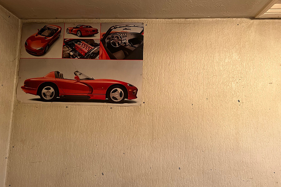 各位顯然可以料到這段往事有甚麼後續發展,因為圖中傻得可以的紅色車已經交代得一清二楚。如果我突然說那張剩下來的海報其實是人稱The Undertaker的摔角手海報,這部車的照片出現在這裏豈不是太也離奇?我對汽車並不見得特別多愁善感,但原版道奇(克萊斯勒)Viper RT/10打從少年時代便一直是無償入住我腦海的住戶。