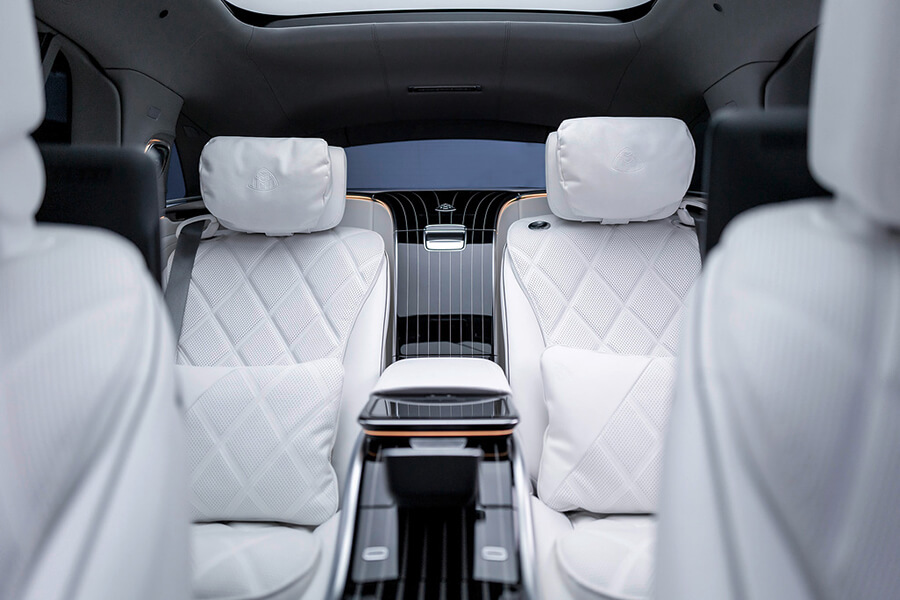 為了彰顯 Mercedes-Maybach 自創立後一路堅持至今的奢華造車工藝,Mercedes-Maybach EQS SUV 以品牌獨一無二的 Nappa 皮革面料鋪陳車室,是 Mercedes-Benz 旗下第一款採用植鞣皮革的車型,使用咖啡豆殼作為鞣劑、且用於製革的水能在回收後回流至大自然水體,鞣製中使用的加脂劑也完全取材於植物,完全符合品牌朝向永續發展的造車理念。同時,舉凡不鏽鋼踏板組、座椅頭枕、座椅靠背、門檻踏板以及後座腳部投影處等,都鑲嵌有 MAYBACH 廠徽,以彰顯其不凡地位。
