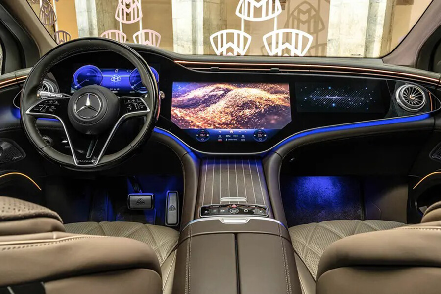 MBUX Hyperscreen 超寬幅螢幕,將動畫轉場、多種模式切換介面均塑造為 Mercedes-Maybach 專屬,並且維持與既有 EQS SUV 完全相同的數位功能,使用者得以透過 Zero Layer 零層級的操作介面,依據自身喜好隨時調整資訊呈現,減低科技操作難度,大幅提升數位便利性。此外,作為 Mercedes-Maybach 家族的一員,工程師亦相當在乎後座乘客的數位使用需求,特別配置兩個 11.6 吋螢幕的 MBUX 後座視聽娛樂系統,同樣提供各式便利功能與娛樂資訊,乘客可以隨自身喜好,透過觸控螢幕進行各種功能切換。