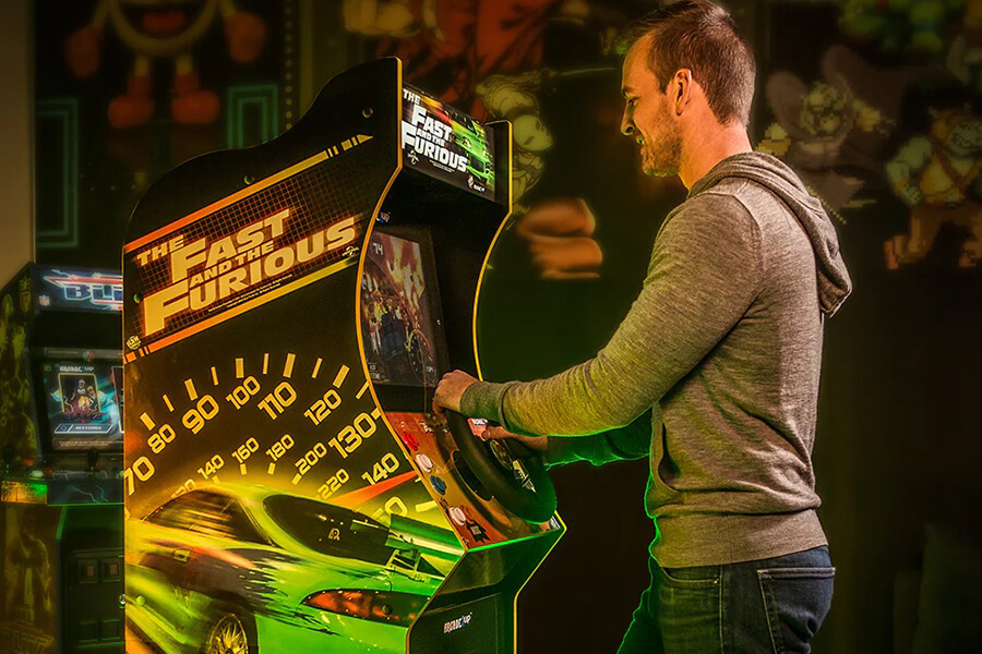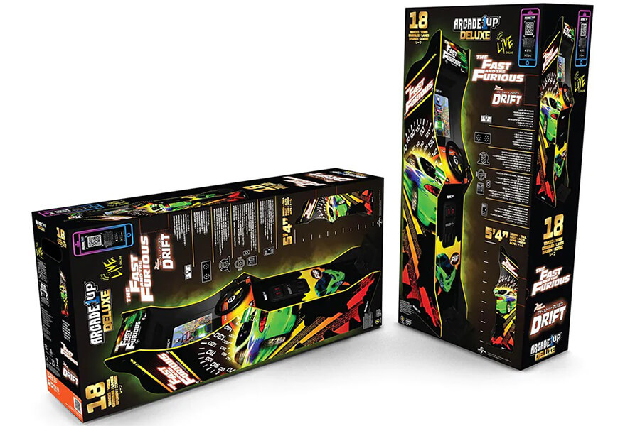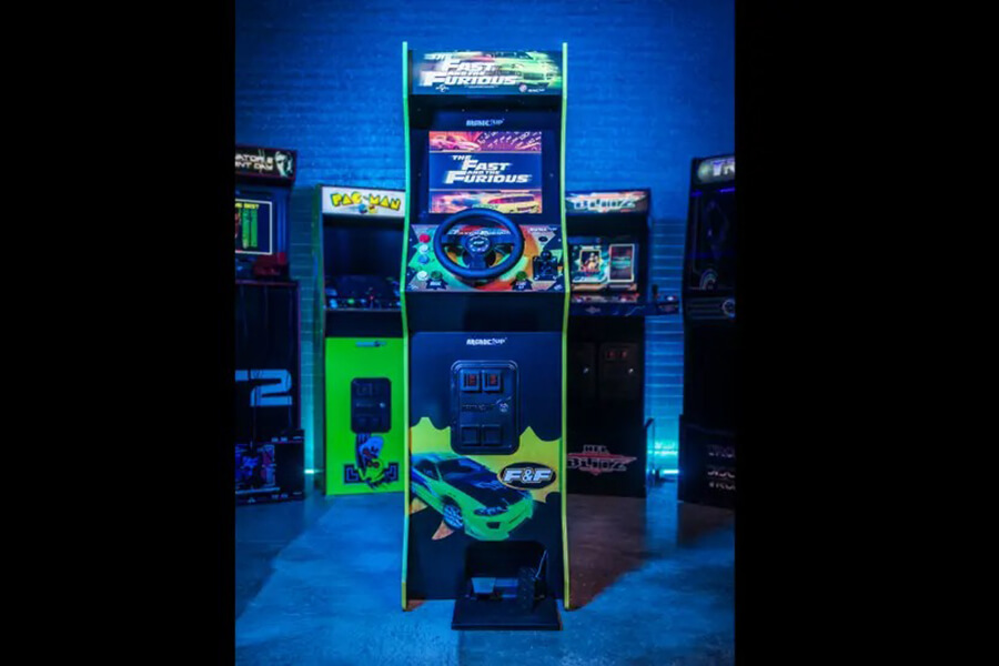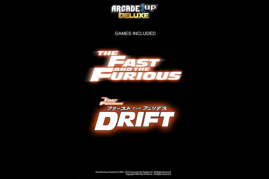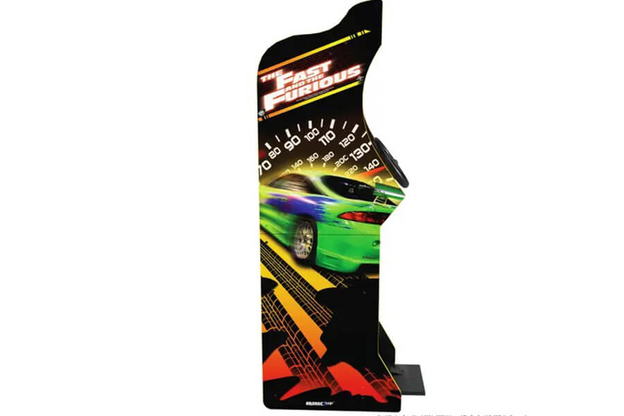 這個組裝完成後的駕駛艙表面有著電影中經典亮綠色Mitsubishi Eclipse的圖案,內含兩款與賽車遊戲Cruis’n舊開發商相同的Midways Games所製作的遊戲:2004《Fast and the Furious》是以初代電影作為遊戲背景;至於2006 《Fast and the Furious Drift》則部分取材至全系列最受歡迎的電影之一:東京甩尾。