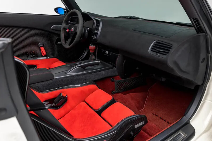 外觀上Evasive Motorsports也為此車噴上Type-R招牌的”Championship White”白色烤漆,同時安上20 週年紀念版前保險桿、定制前分流器、更寬的前輪拱、碳纖維引擎蓋/行李箱蓋、Spoon 空力後視鏡以及碳纖維尾翼。內飾部分有碳纖維Recaro 座椅、碳纖維門飾,及以Alcantara材質包覆的儀表板等。儘管如此,未來的車主依舊能夠在 S2000R 的內外挑選他們理想的客製化部件。