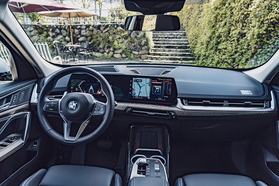 動力系統也隨著早先2AT的腳步,現在全數以1.5升三缸渦輪引擎打底,20i除了引擎輸出放大之外,同步附上48V輕油電系統,因此在156匹/24.5公斤米之外,馬達可以提供額外19匹的輸出。而且過去幾次的試駕經驗裡,寶馬一家十分擅長將這股額外動力著重在加速過程中盡情施展,因此三缸引擎搭配馬達的出力算是充沛好用,特別馬達填補了低速扭力以及在換檔銜接的平順度都算是掌握得不錯,唯獨就是雙離合器變速箱也是偏重舒適或經濟考量的基本設定,強調順暢之餘在急加速,特別是低速大腳想拉抬車速的狀態,都會因為控制接合力道而抑制了一些加速力道,選擇運動模式則是稍稍加快整體效率;不過這點也並非不可理解的設定,畢竟X1本身就是日常實用取向的一款SUV,但身為駕駛可以利用輕加速帶動車身後再加速的手法,會讓加速流暢感更理想一些。而這套底盤在南投山路上雖然不算是爪勁逼人,但純前驅設定在這段路途中算是很合乎我一開始提到的自由自在,動態反應不是特別積極或很有寶馬向來有的濃厚操控味,拉快車速步調也會明顯注意到加高的車身與舒適為主的懸吊組合也會有多一些的俯仰以及慣性擺動,但底盤的包容度不會特別讓這些狀況影響駕駛信心,但也會通知駕駛適度收起自己的玩心,讓它好好本色演出,這方面它確實發揮得挺不錯的。