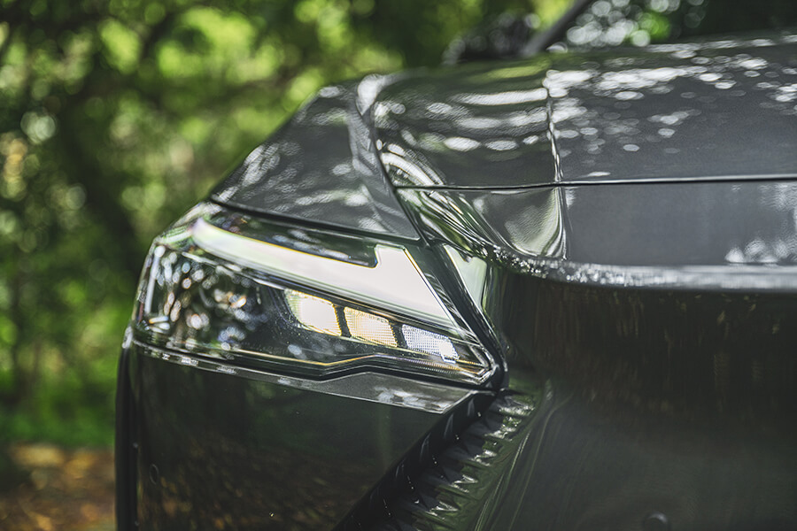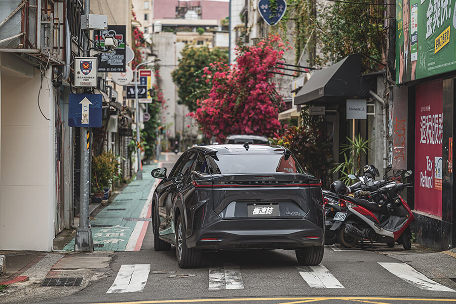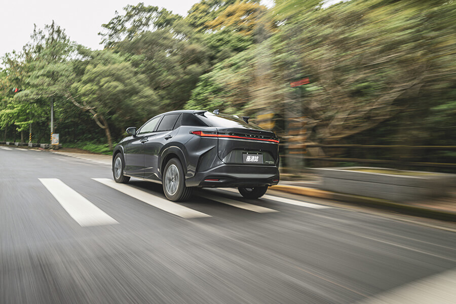 以現在的資訊流通度,大概已經很少人不知道豐田手中的e-TNGA純電動平台到底搞出了哪些名堂,眼前的RZ就是這個模組平台的第三款作品,但可能是這天試乘車的鐵灰色塗裝在第一時間就沒有太激起我的情緒,跟前幾次不管是NX、RX等車總是抱有一種高度期待的心情有相當程度的落差,RZ反倒一直讓我覺得不是那麼有趣,這也有可能是RZ散發出的純電車新鮮感好像沒有那麼濃郁也有點關係,畢竟這部車的大致架構,外型輪廓與設計,我輩已經看過兩次,就模組電動平台打造不同車款的外形這件事,這次日本可能略遜相鄰一個海峽的韓國,但也有可能是一種家族化設計考量吧。
