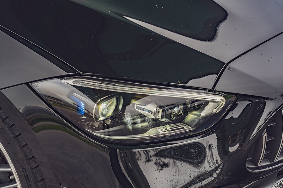 但是,對,另一個但是。在一段不是太糟糕的路段裡,這副底盤的穩定抓地效果還是很讓人信服,轉向手感維持穩重但轉向速度與明確性更高,配上後軸轉向輔助加持,刷過彎道也能夠受到廠方近年來在底盤操控上的調整風格,雖在本車上不算特別求俐落刁鑽,但完整發揮賓士一貫讓車輛壓在路面上的沉穩步調,同時透過轉向與四驅系統的調配增加動態流暢度,對於一輛中階性能代表來說,該達到與扮演的目標,我想是恰如其分的。