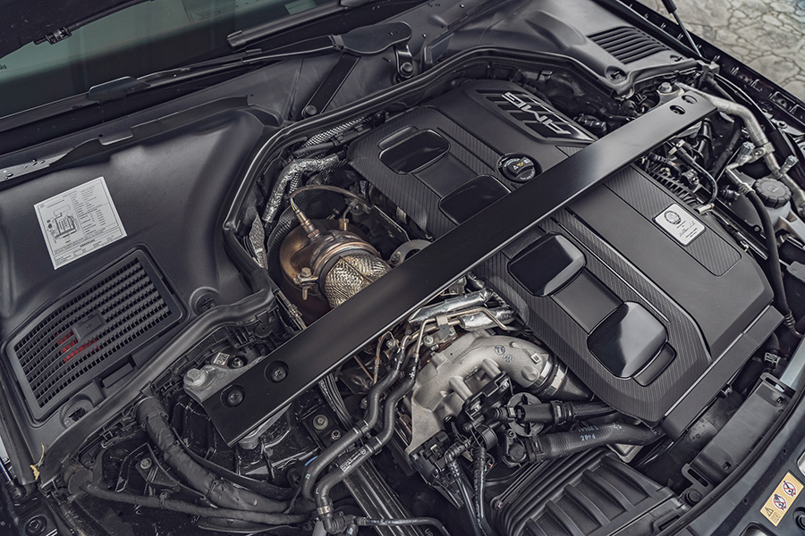 與時俱進之後,電氣輔助的渦輪也順應誕生,C43所運用的電子渦輪也並非市場首見。不過新的作法到是目前首見,進一步減少了上一世代電子渦輪系統相對複雜的結構,當然最重要的是更進一步提升渦輪作動的反應,而相對於上一世代的電動渦輪就像是多裝了一組電扇來提升進氣量,加快渦輪啟動的反應,現在的模組電動渦輪則是實際上達到自主作動,隨時配合引擎的需求來運作。