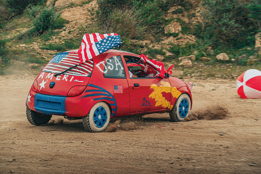 我十四歲開始玩草地autotest時第一次學會J-turn,也就是我所知的reverse flick(倒車掉頭)。儘管動作看起來龍飛鳳舞,其實J-turn可能是最容易上手的招式之一,所需條件主要有兩個——速度和咬緊牙關。J-turn具體地說就是直線倒車時180度掉頭,在不減速的情況下變成車頭向前正常前進。跟所有需要借助側滑的招式一樣,我會建議去草地練習,因為這種場地最容易削弱抓地力,又有大量緩衝空間。