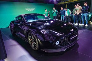 神秘嘉賓現身!中場休息時刻,喘口氣喝杯咖啡時所有人被引領到另一處空間,讓我眼睛一亮的是居然擺了一部AMB-001 Pro,如果各位是TG長期讀者,應該知道重機是我個人的嗜好,看這部車著實讚嘆不已,比起最初的街道版AMB-001,Pro賽道版拿掉了一些多餘的贅物後,看起來更清爽且獨樹一格,甚至心裡浮現一個好想偷偷跨上去的大膽想法,即便這時廠方人員提醒等一下將有五部神車現身,但對我來說這部車就已經夠神的了,其他就……..。好啦,乖,五部神車才是這次的重點,就在故弄玄虛以書櫃偽裝而成的大門緩緩打開之際,五星陣法排列的五部神車由V12 Speedster及F1賽車擔任前鋒,張開翅膀的Valhalla Concept位居C位,後衛則是DB4及Zagato Shooting Brake坐鎮。