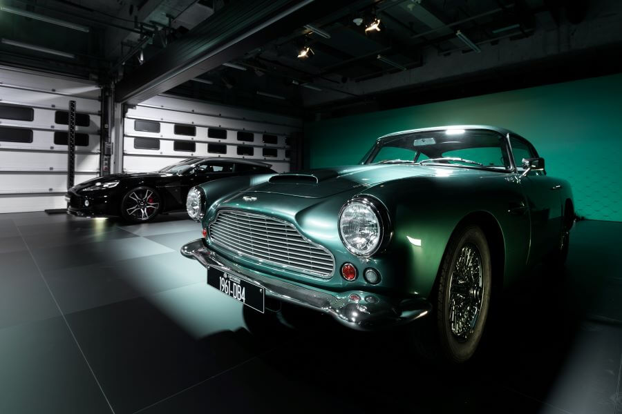 DB4為Aston Martin於1961年為取代DB Mark III所推出的車款,整部車的機械架構及動力都是全新設計,四人座車身由位於米蘭的Carrozzeria Touring公司所設計,採用Superleggera構造,將鋁合金車身板件固定在管狀框架上,而管狀框架構再與底盤結合。在當年DB4是第一款不到30秒時間內完成0-100-0mph加速煞停測試的量產車,0~100mph加速更只需21秒,以優異的性能引領Aston Martin進入另一個新時代,在品牌歷史上有著重要地位。