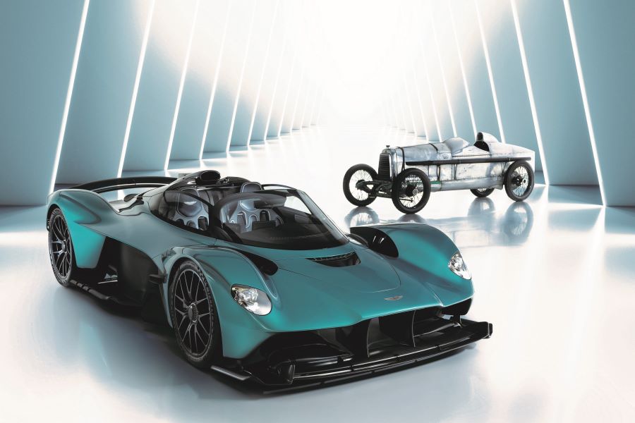 就Aston Martin在這110年間的品牌歷史來看,主要可分為四個階段,草創至二戰前的1939年,二戰後1947年由˙David Brown接手的DB時期,在1959年贏得首場利曼24小時大賽勝利,1987~2007年為Ford集團所持有,再來是2020年Lawrence Stroll入股公司並取得執行董事至今。為紀念110週年,廠方特別找現存最古老的Aston Marti賽車之一,破紀錄的1923年Razor Blade賽車與Valkyrie合影。作為最早採用空氣力學設計的汽車之一,具開創性的Razor Blade於1923年在布魯克蘭締造多項級別記錄,而最新的Valkyrie以最新F1技術所打造,成為近代最激動人心且劃時代的代表性公路跑車。