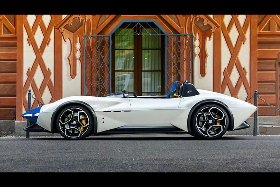 除了呈水滴狀現高低起伏的前後葉子板,Kode61 Birdcage還具備低扁銳利的頭尾造型、細長的燈組、向上打開的車門以及突出的進氣口與擴散器,同時三輻輪圈造型也讓人不難聯想到MC20上所擁有的設計;而採高安裝位置的排氣管與前方的大型進氣口皆說明此車是以內燃機作為動力來源,或許是以現有超跑底盤架構及引擎訂製而成。