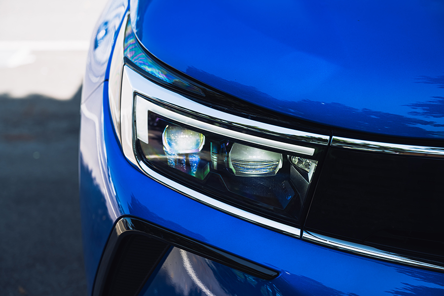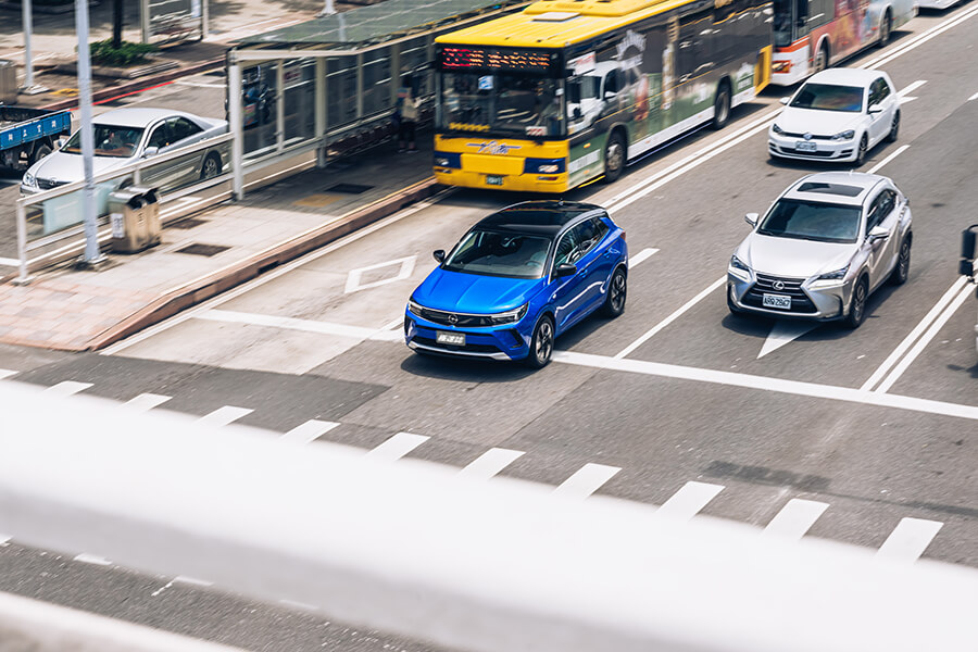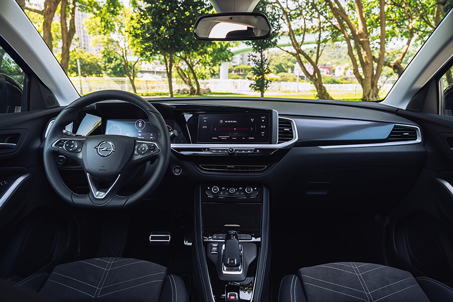 不過總是一分錢一分貨,Grandland的配備等級確實相當夠水準,我們所試駕的Business Elegance系列車型就附上了Pixel Light矩陣式頭燈,要是單看那簡單的二筒魚眼造型與黑色素料包圍的燈組,可能還會以為只是基本LED燈組的安排。相較於我們近期在各大品牌上常見那些透過各種裝飾與精雕細琢的燈眉點綴或是整套燈組裝飾設計,確實展現了Opel目前主要運用的樸實設計元素。這個主軸也貫穿全車內外,除了那亮藍配黑頂的雙色塗裝在台北以黑白灰銀為主的街道上顯得特立獨行之外,有時候還真會覺得它並沒有太強烈的新車氣息。