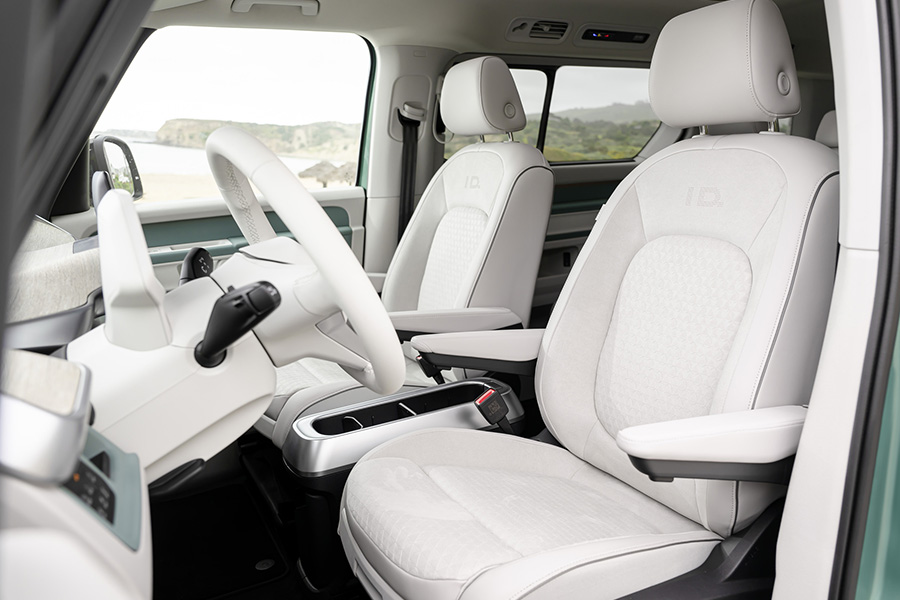 我們從成員座椅安排開始談談ID. Buzz LWB吧。首先雙前座標配了12向電調座椅、並具有加熱/通風、記憶及按摩功能,且在內側附有可調的扶手(外側扶手列為選配)。第二排在標配狀態下裝著一張三人長椅、配有可4/6分離、16度調節角的椅背,並有著200mm的前後滑移調整量。在此區域的選配項目包含加熱座椅、以及兩張具備扶手的獨立座椅。