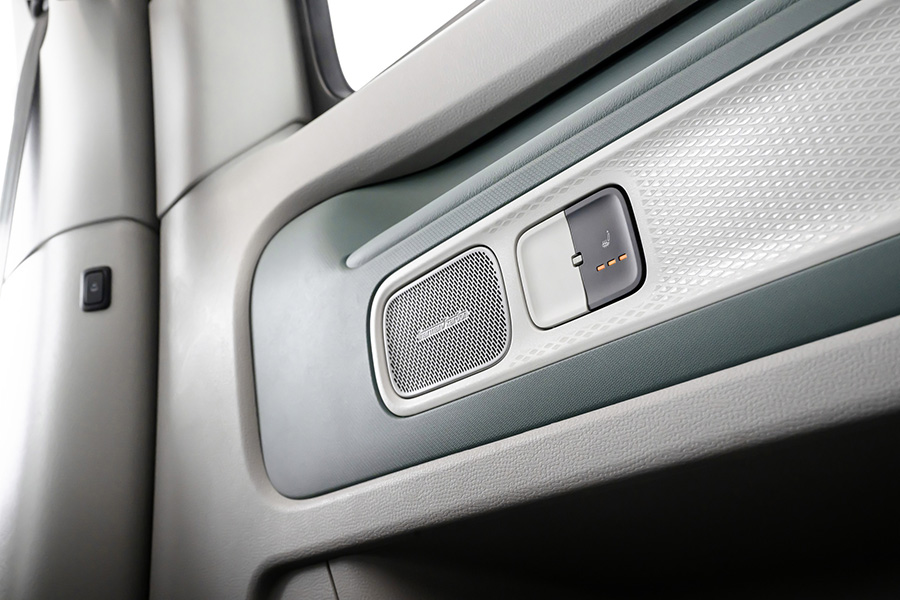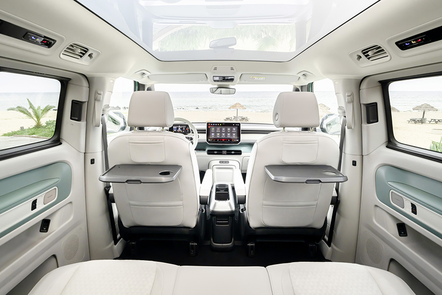 在車室頂端有一面1.5平方公尺的全景天窗,並具備通電控制透明度等功能。此外側滑門及尾門也可進行電動啟閉。
