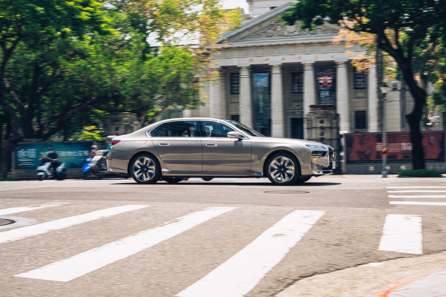 我承認一開始確實輕忽了它,就覺得i7只是一台沒有聲音,動力特性跟iX類似的大房車,但實際上這部i7 xDrive60另有玄機,前後雙馬達的四驅設定,綜效馬力和扭力分別為544hp和75.5kgm,雙劍合璧的充沛動力反應與油門之間的聯繫極度緊密,絕非5391mm車長顯現的溫吞模樣。或許,下盤回饋十分踏實,手感柔中帶剛的特性仍是我熟悉的7系列,加上後輪主動轉向擁有最大可到3.5度的轉向功能,既有助低速靈活轉向,用較高速度入彎時又可以令動作跟3系列一樣敏銳,因此千萬別用視覺印象就評斷這部電動超級大房車無法殺彎,試過就知道,它真的可以。