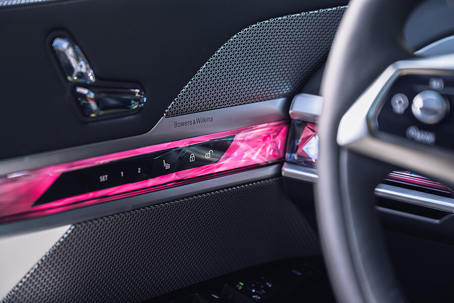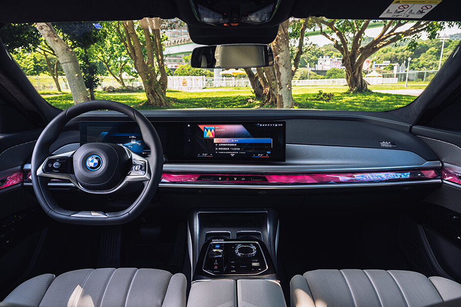 當然,若只看駕駛座的12.3吋儀錶和14.9吋資訊娛樂觸控螢幕,跟其他BMW相同的設計確實單調了些,但這套系統勝在於實用且容易上手,駕駛前方視線可以有更清楚的劃分。至於中控台下緣的互動式面板就不用多說,其晶瑩剔透的材質底下以光線顏色變化連動My Mode七種模式,並同步搭配出自好萊塢配樂大師Hans Zimmer之手的音效。至於後座大銀幕降下來時,駕駛的後方視野被擋住這件事,還有大銀幕和後座乘客之間距離過於接近的顧慮,只能說瑕不掩瑜,也許下一個年度生產的型號會有解方也說不定…….。