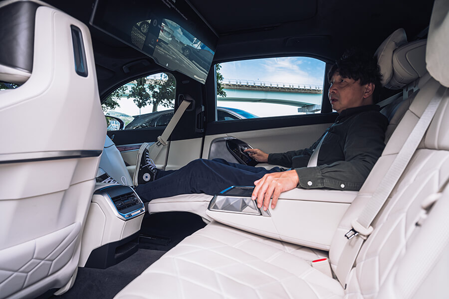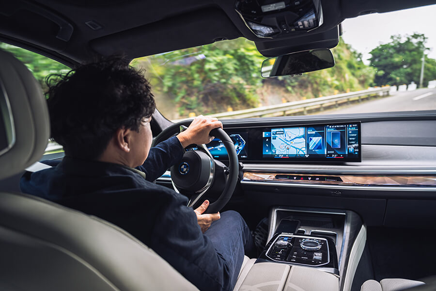 即便先前已試過740i,但想不到還是得重新適應一次,畢竟現在的新科技在配備方面不斷的快速堆疊,即便可以看出廠方盡其所能的化繁為簡,但仍需一些時間消化才能適時派上用場,當然,即便這次車上配的是純電動力,但最引人矚目且值得吹噓的還是那組能夠從車頂滑至眼前的32:9超寬比例31.3吋大銀幕,明明上次已經體驗過,但還是會忍不住想看它上上下下滑來滑去……。不過,事情難免有不過,要享受影音頻道的前提是車主須先將Sim卡及頻道帳號設好,以免像我們興沖沖放下螢幕後不管怎麼按就是沒有影像,也許是總代理希望我們專心試車吧,但我是真想試試在後座邊看片邊吃爆米花喝可樂的感覺吶……。