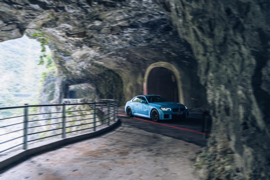 這段路真是此次試駕行程最精華的部分,M2在人工鑿出的山壁與隧道間穿梭,精準的指向性與手感渾然天成,一開始我習慣的用上手排模式,不過很快就發現整個節奏被打亂了,這要怪我自己,因為轉速攀升速度實在太快,我又習慣憑引擎聲換檔,但每次腦袋指揮手指撥動進檔的時間又老是慢了一拍,速度因超轉斷油而被拖慢,試了好幾次還是跟不上,實在受不了乾脆調回自排模式,只在必要的大彎前才用手排退檔,其他全交給電腦後果然跑起來就順多了,動作也更加流暢,前19後20的輪胎可兼具敏銳轉向手感及動力傳遞效率,原本柔中帶剛的懸吊也更有韌性,車身側傾及前俯後仰的情況都得到有效控制,牢牢咬住路面的強大抓地力成為駕駛者的堅強後盾。