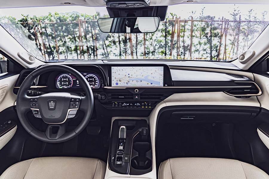 車頭那具2.4升渦輪引擎跟我印象中的渦輪引擎有些不同,並不會毛毛躁躁或有些神經質,而是線性且推力渾厚,畢竟光引擎在2000rpm就能供應46.9kgm的扭力,前後各一的電動馬達也幫了不少忙,即便6速手自排算不上積極,但實際速度比體感還要快的多。只是,對,只是用力劈進第一個彎,偏重的手感與慣性逼的我必須大方向盤扭動幅度才能回到預定路線,隨著第二個、第三個彎,皇家版始終堅持其帶著些微轉向不足的作風拐彎抹角。那eAxle的作用呢?就加速而言確實有幫上一些忙,出彎反應相當凌厲,但我必須用力Hold住方向盤才能拉住一直想往外偏的車頭,至於技術解說中提到的前後驅動力調整會對操控產生一定助益?請恕小弟駑鈍…..。