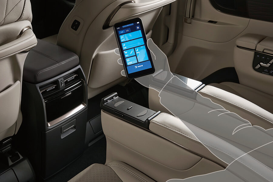 TOYOTA ALPHARD 車室以私人專機理念設計,提供更為頂級的乘坐體驗。ALPHARD全車採用高級皮質和頂尖工藝,第二排座椅新增中央走道,使第三排乘客在進出上更為輕鬆便利,第二排座椅採用電動超長座椅滑軌設計及VIP級的Ottoman腳靠,並同時具備電動調整、加熱、通風等多項功能。除此以外,後座所提供的無線控制面板更讓乘客在享受媲美頭等艙般乘坐感的同時,也能一手輕鬆調整旅程中的各項貼心設定。
