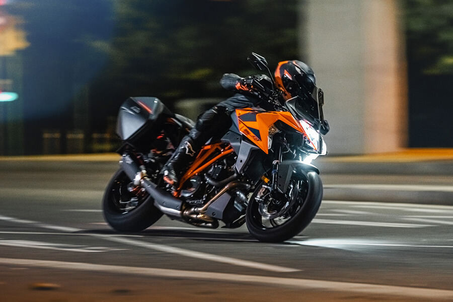 除了電子懸吊精妙的數位腳法,各式科技配備亦是GT車型的一大重點。全新的7吋TFT儀表搭配恰當的按鈕設計,使騎士可以即時輕鬆地進行車輛調整。此外還有KTM Connect手機連線、加熱把手、LED轉向輔助燈、三種騎乘模式(道路/雨天/運動)、ABS ( 街道 / Supermoto ABS)、彎道ABS、MTC 循跡系統 (On/Off)、IMU 慣性測量單元、定速巡航系統、Keyless免鑰匙啟動系統、TPMS 胎壓偵測系統、ATIR方向燈自動熄滅系統等,別懷疑,以上落落長一大串通通皆為標配;至於選被部分則有雙向快排、MSR引擎煞車煞抑制系統、上坡輔助系統、Track Pack 賽道包(關閉防孤輪+彈射起步+MTC(1-9段調整)+Performance模式+Track模式+油門模式調整)(選配)、Tech Pack科技包 ( MSR 檔煞抑制系統+進退檔快排系統+緊急煞車警示燈+Track Pack) (選配)等等。