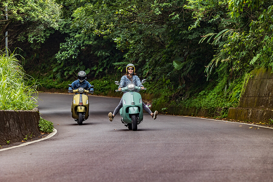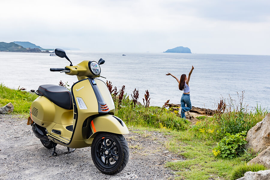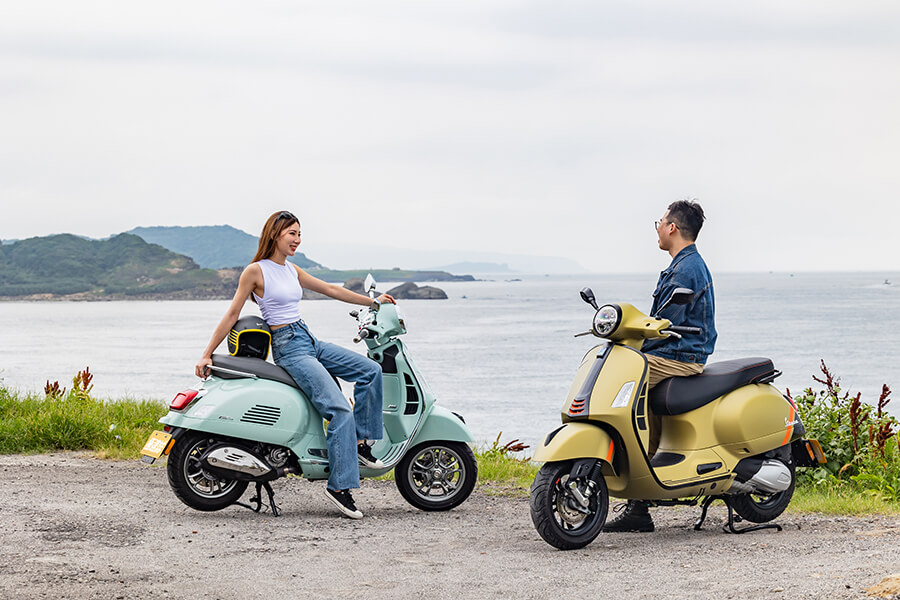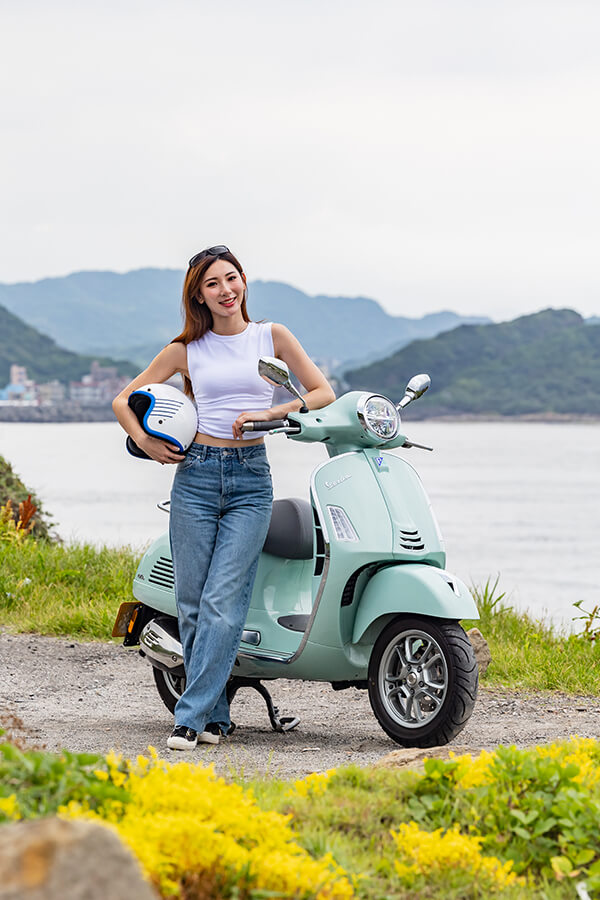 “很輕鬆啊,騎起來沒啥負擔”平常不時騎紅牌檔車跑山的她神色自若地表示。話音未畢,她便縱身一躍、在臨海的礁石間愉悅地連擺出幾個拍照pose。我想這正是Vespa造出此車的目的,如今市面上強調加速多快、過彎多殺的車款何其多,但在Vespa上可以看到這間義大利品牌對人與生活的重視程度:以優雅的姿態展現個性,讓重機不僅成為引領騎士輕鬆走向更開闊世界的工具,更成為衣著、品味與生活風格的延伸,我想這或許也是另一種面向的「人車合一」吧。