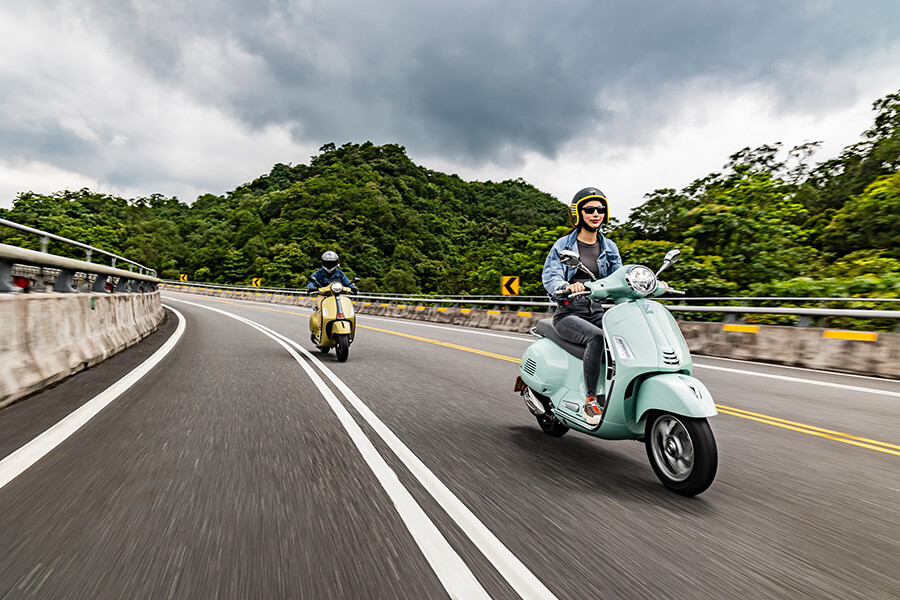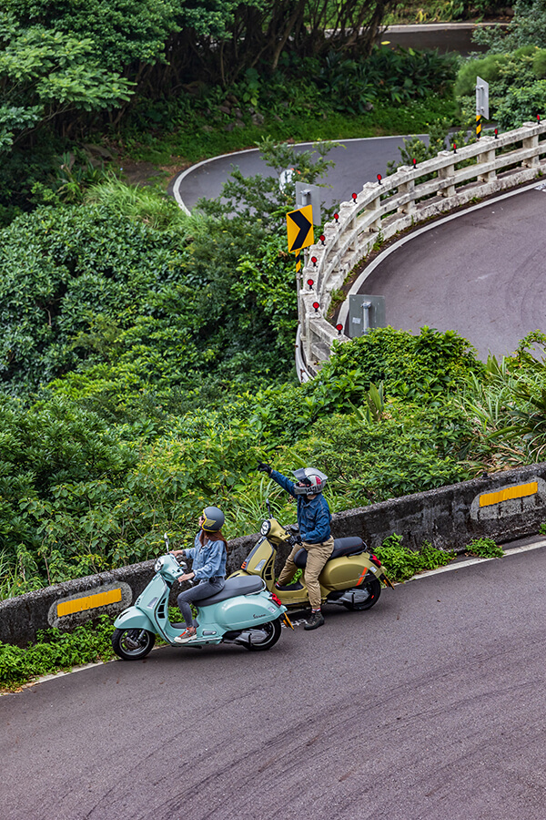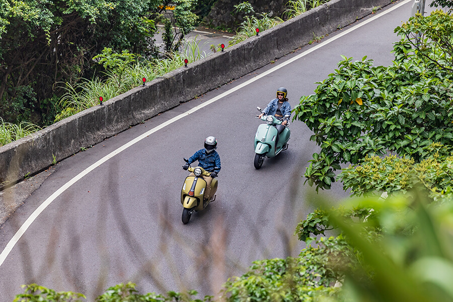接下來的路程要翻過刁鑽的瑞雙公路、越過著名的不厭亭後直抵海邊。一開始小編先以過往習慣的騎法,完成減速後持續帶著些許煞車、嘗試將重心移往前方並傾倒入彎,發現前單搖臂的回饋感受相當特殊、加上先天車尾偏重的特性,讓我在以此番方式攻略山路時相當不適應。幾個彎道過後我決定改變作風,直直的減速後快速地迴旋、出彎。自此先前地陰霾果真一掃而空,當身體自然地端坐,車身的重心其實與騎士相當接近,轉彎時只需要控制身體重心就能過彎,活像坐在後輪上過彎一樣自然;而在連續彎道間傾斜、回正、再換邊傾倒的剛性與穩定感相當高,騎起來是一種精緻且高品質的感覺。此後若是有人問我Vespa該怎麼騎?刻意使用小技倆嘗試”指揮”車輛顯然行不通,反倒是在心中規畫出一條路線,並以最單純、直覺的方式操作油門與煞車,GTS便能車隨人志、乖乖聽話。