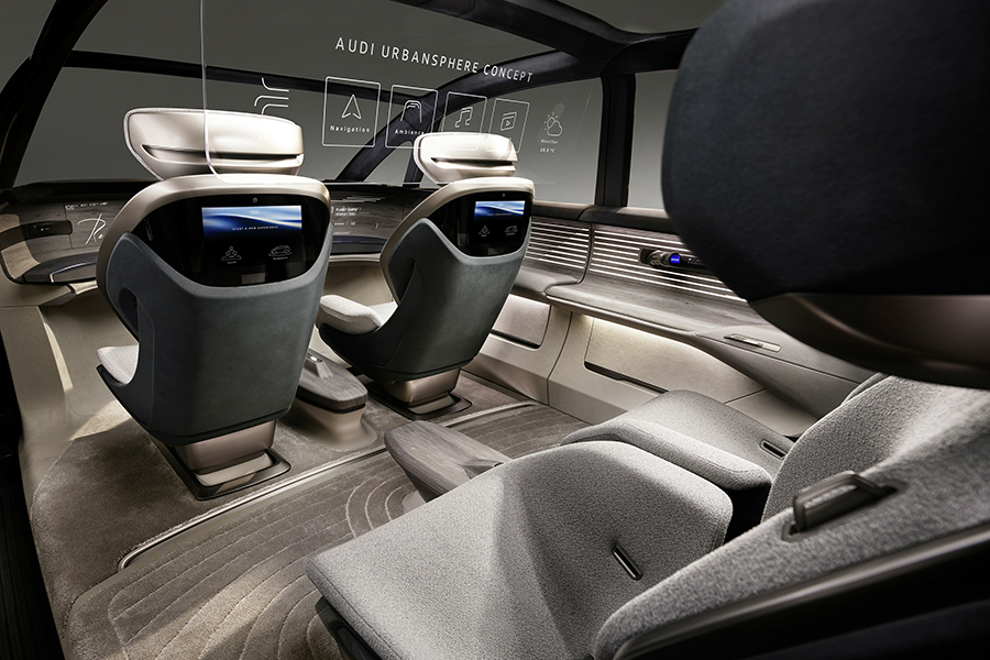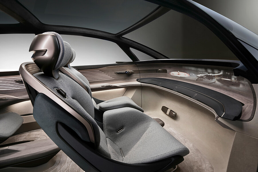 在這次品牌概念店中最受矚目的,莫過在去年發布的Audi Urbansphere Concept。除了以Level 4 自動駕駛環境作為設計架構,車輛的角色也從”被駕駛”過渡為以乘員體驗為本的核心理念。三排、六座的配置中選用在地、可完整使用的角樹木材、經ECONYL®認證的可回收再生聚酰胺尼龍帆布座椅襯墊、竹纖維內飾面料等等,在大秀永續、環境意識的同時,更可將座椅藉由觸控方式自由調整,每個座位更配備獨立螢幕及音響,在MMI touchless response的加持下可以語音、手勢與眼球追蹤等方式操作娛樂與資訊功能,第一、二排之間還有可升降收折的cinema screen OLED劇院銀幕,以大螢幕欣賞電影、音樂會或加入視訊會議。另外此車還有壓力偵測功能,偵測分析乘客感受並且適時提供放鬆建議或輔助冥想功能。