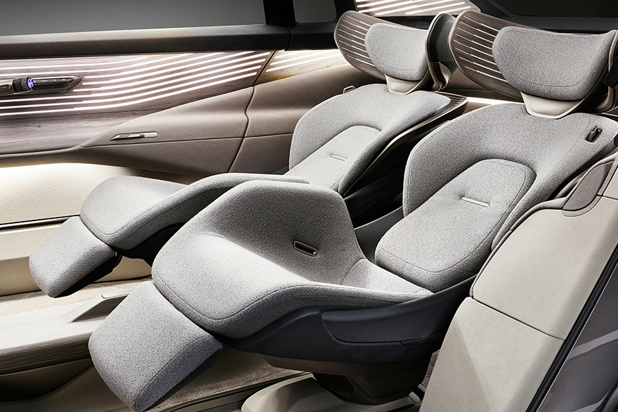 除了對內的乘坐體驗,Audi Urbansphere Concept具備Audi Light Canvas 燈光畫布向界進行溝通,包含使用動態燈光表示警告、加速中、轉向指示等等;同時照明設計仿效四環Logo中間交疊的”Audi Eyes”,可偵測並適應交通狀況、同時可如人眼虹膜般調整燈光聚焦程度。