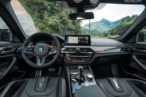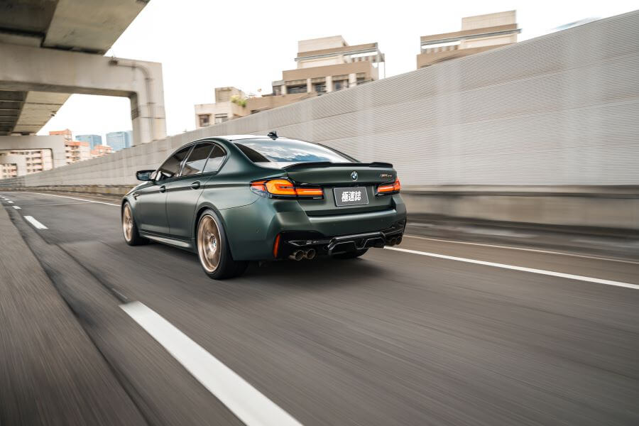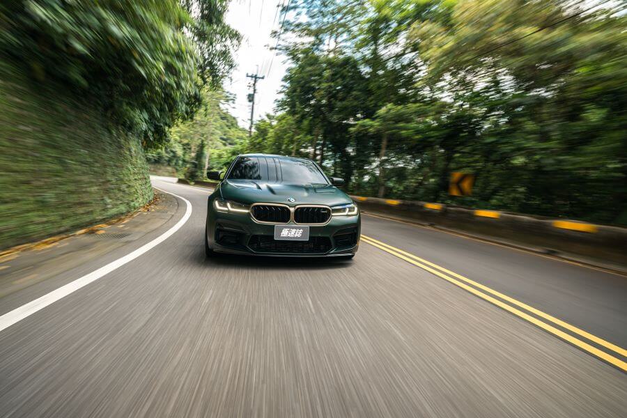 上路不過3分鐘我就察覺到它那咄咄逼人的衝勁,取自M8 Gran Coupe的懸吊換來更硬的減震彈簧與避震器,車高也跟著降了7mm,一路蹦蹦跳跳就像精力旺盛的小夥子,油門的任何反應都可以換來如惡霸般的吼叫聲,彷彿喊著:識相的最好都讓開別擋路。確實它有這個本事,在很難不注意到的碳纖維引擎蓋底下,這具M型4.4升V8雙渦輪增壓引擎力能產生635匹最大馬力,僅需3.0秒就能加速至100km/h,即便0~200km/h加速亦只要10.3秒,一鼓作氣更可直搗305km/h極速。你沒看錯,這本該只屬於超跑的性能數據如今居然被套用在體型如5系列的四門房車身上,真的好壞,不,簡直壞到骨子裡。