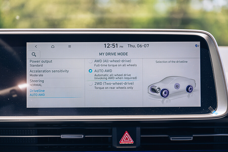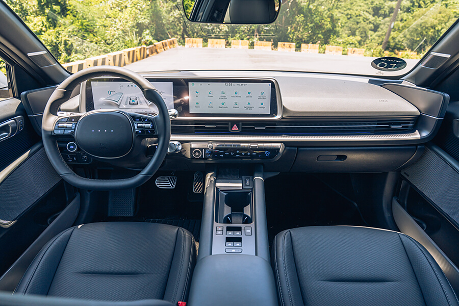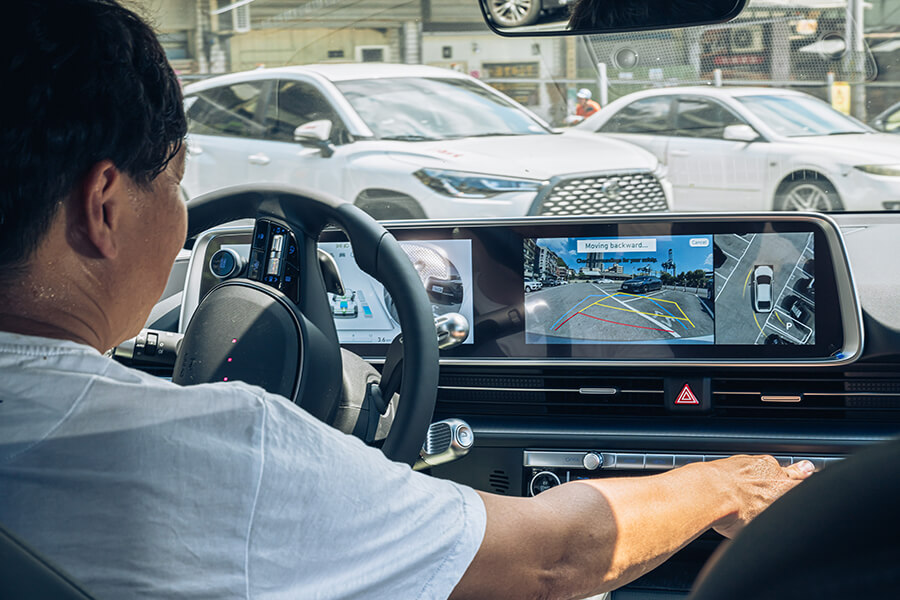 再回頭來就談談車廂吧,Ioniq 6的後座相當寬敞,腿部空間幾乎快要跟賓士S-Class不分軒輊,以小編為例,170公分的身高在後座可以輕鬆翹腳還不會頂到前座椅背,你就知道後座空間有多可觀了,另外這部EV600 Performance在配備上也是相當有內涵的,例如列為標配的全自動停車功能,除了可以用遙控器讓車輛自動駛出停車格(RSPA智能遙控停車輔助)讓乘客上下車更方便的同時,透過12.3吋觸控螢幕指示並按下環景開關,接下來全交給控制系統搞定一切。另外,快速傾倒的座椅功能還有前後座皆具備的V2L充電功能更是貼心,這些都讓我輩十分滿意,作為一部新世代的純電車,特色本該如此。