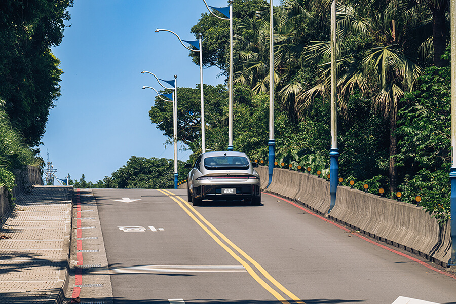 當然,純電車偏高質量對操控帶來的負面影響也是難免,切入Sport模式儘管有著優渥的能量任君揮霍,但較偏向舒適調性的下盤在過彎時確實能察覺到較明顯的側傾,這也說明它並非彎道殺手,不過你倒是可以透過動能回收的力道選項,切入回收力量最大的設定,藉此獲得更好的入彎減速力道,這一點很重要,此功能可以讓進出彎的節奏更趨近於內燃機,而且出彎瞬間又會精神抖摟全力以赴,就算少了傳統變速箱的檔位切換特性,只要抓到它的脾性還是可以享受駕馭之樂。