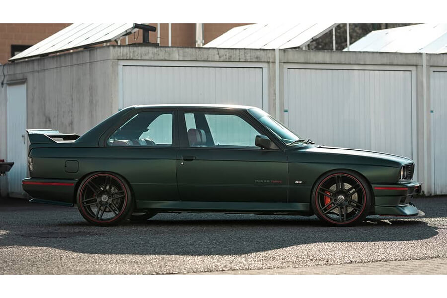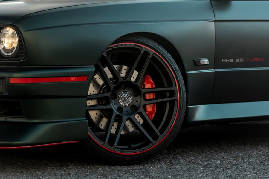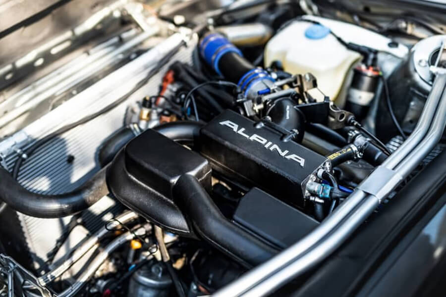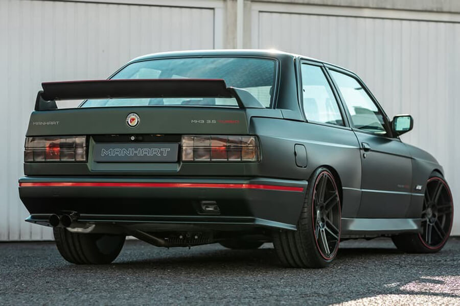 是的,Manhart將E30 M3原有的2.3升自然進氣四缸引擎吊起來擺進倉庫,改由1981/82 Alpina B7 S Turbo的3.5升渦輪增壓引擎接管引擎蓋下的天地。當年以E12 5系列為基礎的B7 S Turbo是當時世界上最快的四門量產車,當時是憑藉著Alpine重新整理的引擎搭配KKK K27渦輪,達到約330hp、極速來到260km/h的水準。