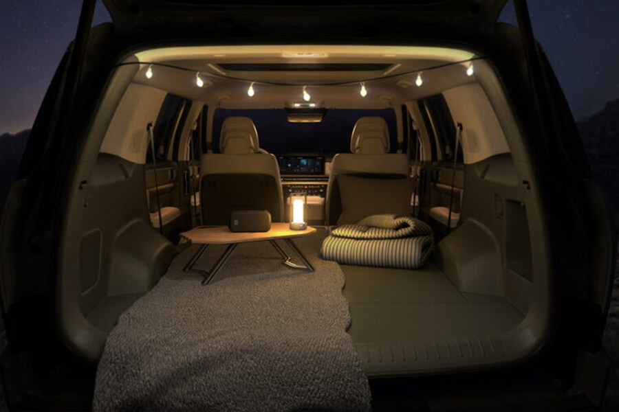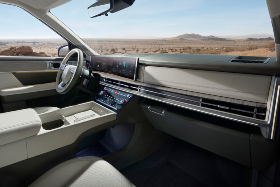 五代Santa Fe這次在車寬維持在1900mm的情況下,將軸距拉長48mm來到2815mm、車身高度來到1720mm,車輛全長也增加46mm來到1830mm。現在諸位大概可以想見新款Santa Fe勢必擁有更佳的空間機能:除了尾門開口面積更大外,第二、三排的腿部及頭部空間也根據不同的動力形式而有各自不同的增幅,725L的載貨空間則可透過後兩排的座椅摺疊來達到最高載運機能。